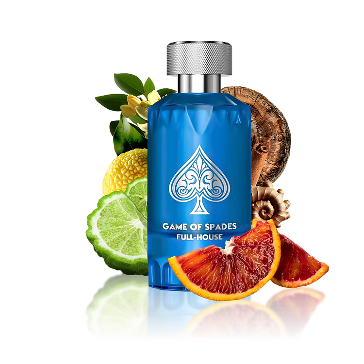 Game of Spades Full House de Jo Milano Paris es una fragancia de la familia olfativa para Hombres y Mujeres. Game of Spades Full House se lanzó en 2024. Las Notas de Salida son cidra, naranja siciliana y bergamota de Calabria; las Notas de Corazón son jengibre nigeriano, neroli de Túnez y canela de Ceylan; las Notas de Fondo son té negro de China, ambroxan, madera de gaiac y incienso de olíbano (franquincienso).