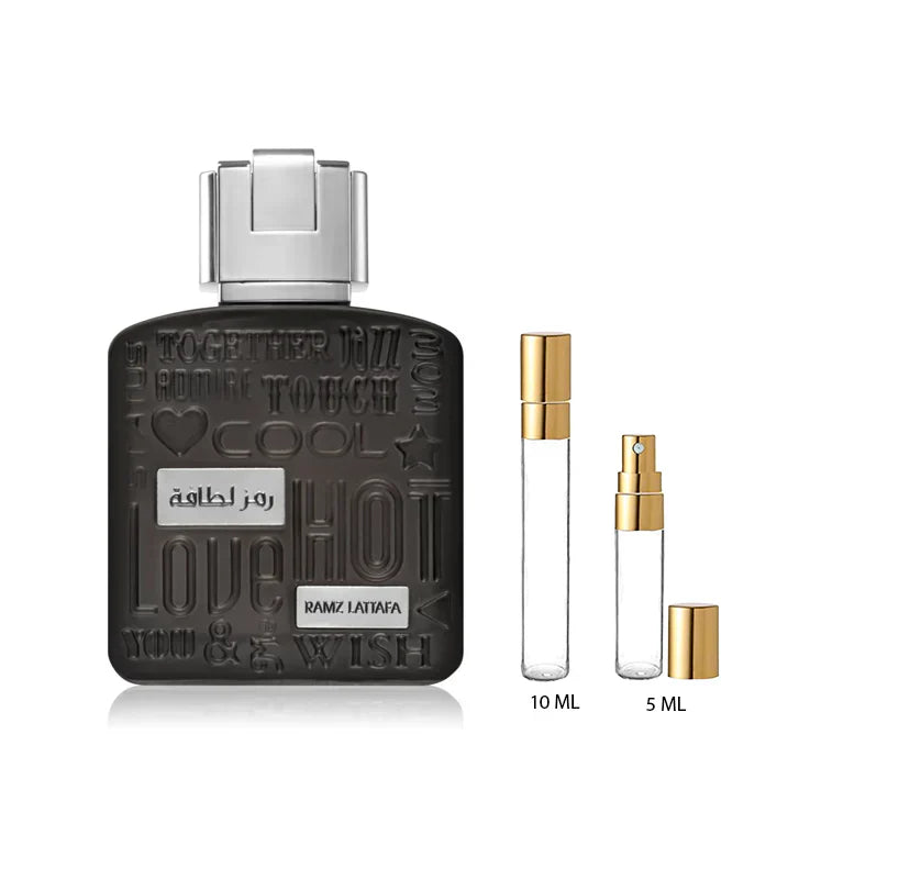 Ramz Silver Eau de Parfum de Lattafa es una fragancia masculina sofisticada que combina una apertura cítrica cálida de pomelo, mandarina y anís estrellado. Su corazón floral revela heliotropo, cedro, flores de olivo y cipreses, aportando elegancia y profundidad. La base envolvente de tonka, vainilla y madera de gaiac ofrece un aroma lleno y armonioso, ideal para el hombre que busca distinción y suavidad en cada momento.